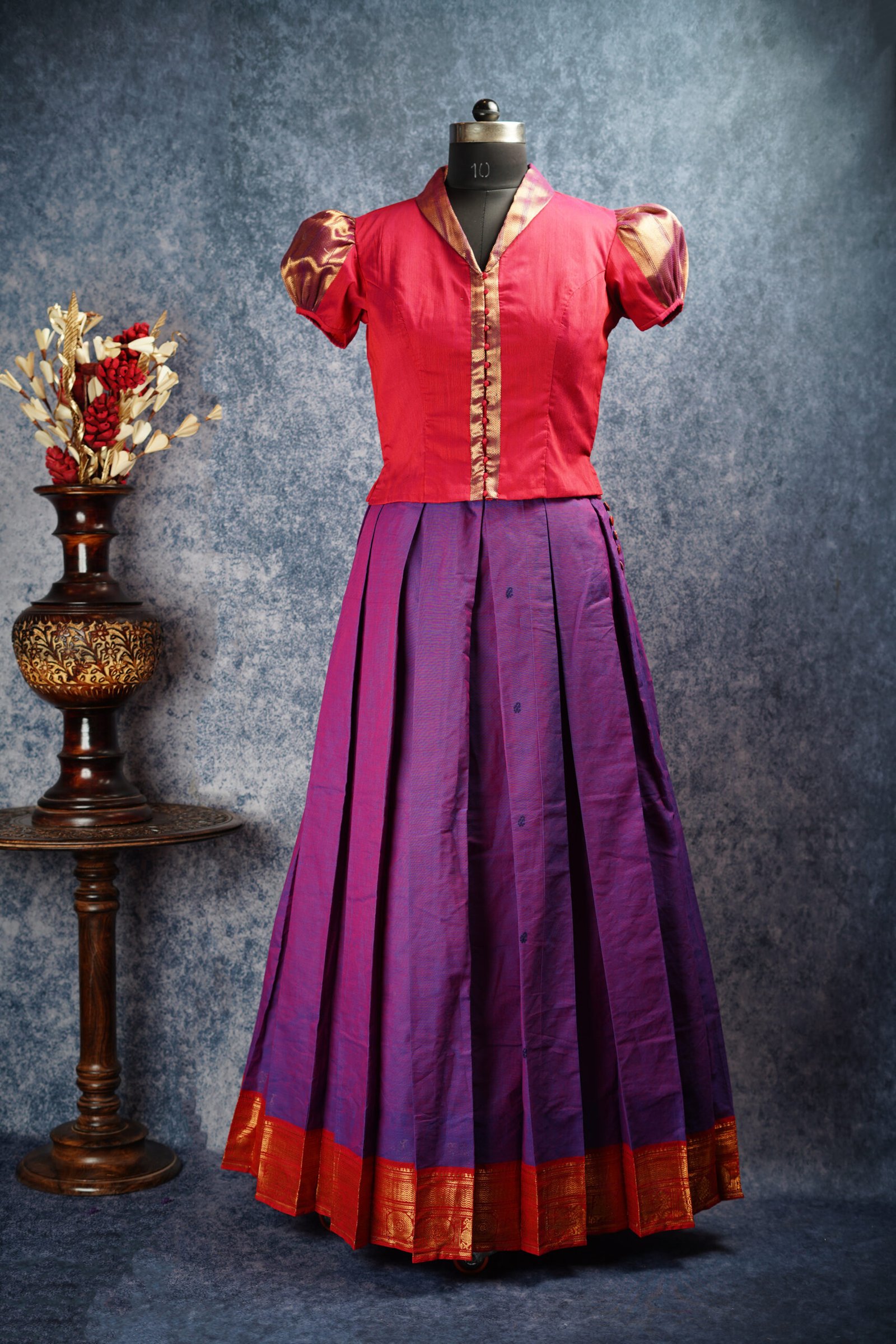 ✅ Flared pavadai with gold border